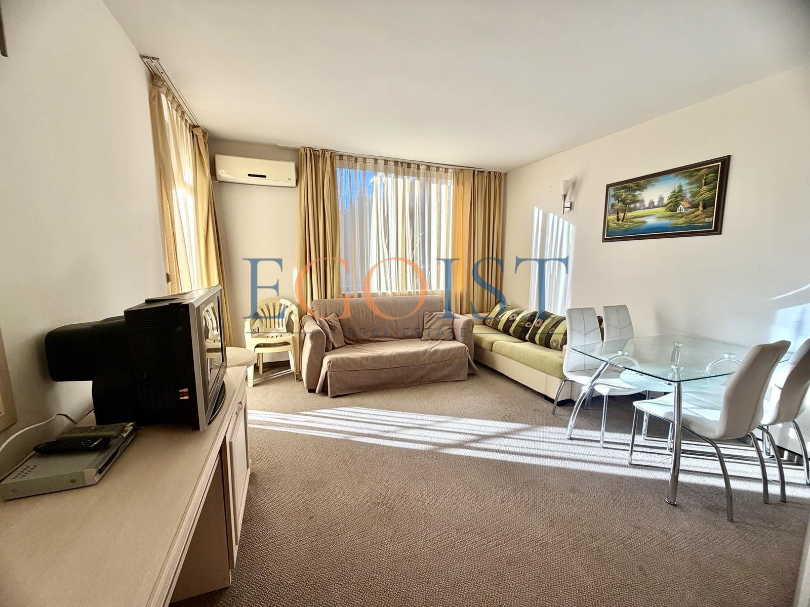 На продажу предлагается апартамент с 1 спальней, который состоит из прихожей, гостиной с зоной для кухни и зоной для отдыха, спальни, санузла и террасы. Подходит как для круглогодичного проживания, так и для сдачи в аренду. Акт 16.