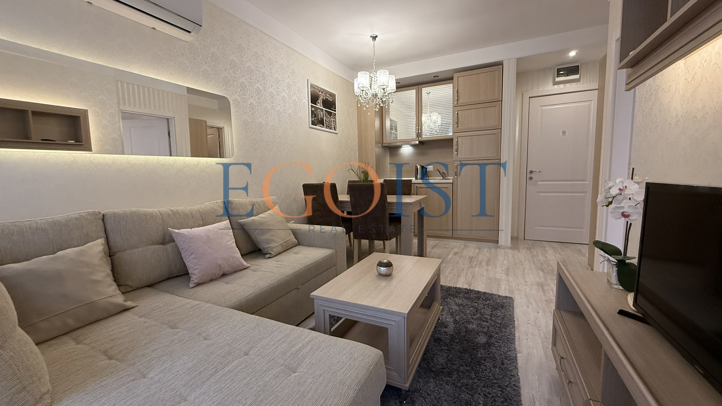 На продажу предлагается апартамент с 1 спальней, который состоит из прихожей, гостиной с зоной для кухни и зоной для отдыха, спальни, санузла и террасы. Подходит как для круглогодичного проживания, так и для сдачи в аренду. Акт 16.