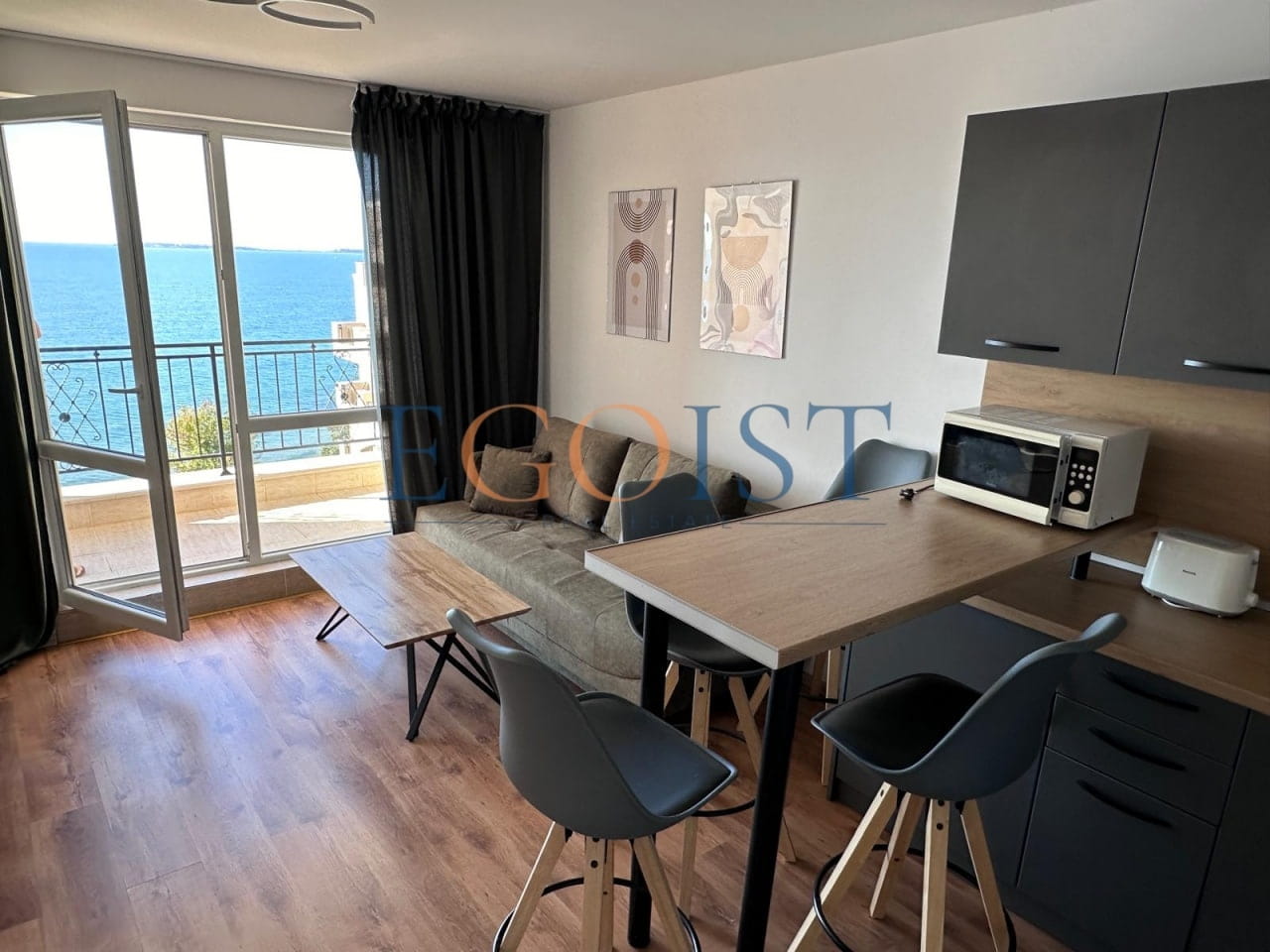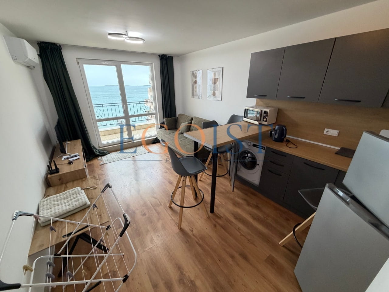 На продажу предлагается апартамент с 1 спальней, который состоит из прихожей, гостиной с зоной для кухни и зоной для отдыха, спальни, санузла и террасы. Подходит как для круглогодичного проживания, так и для сдачи в аренду. Акт 16.