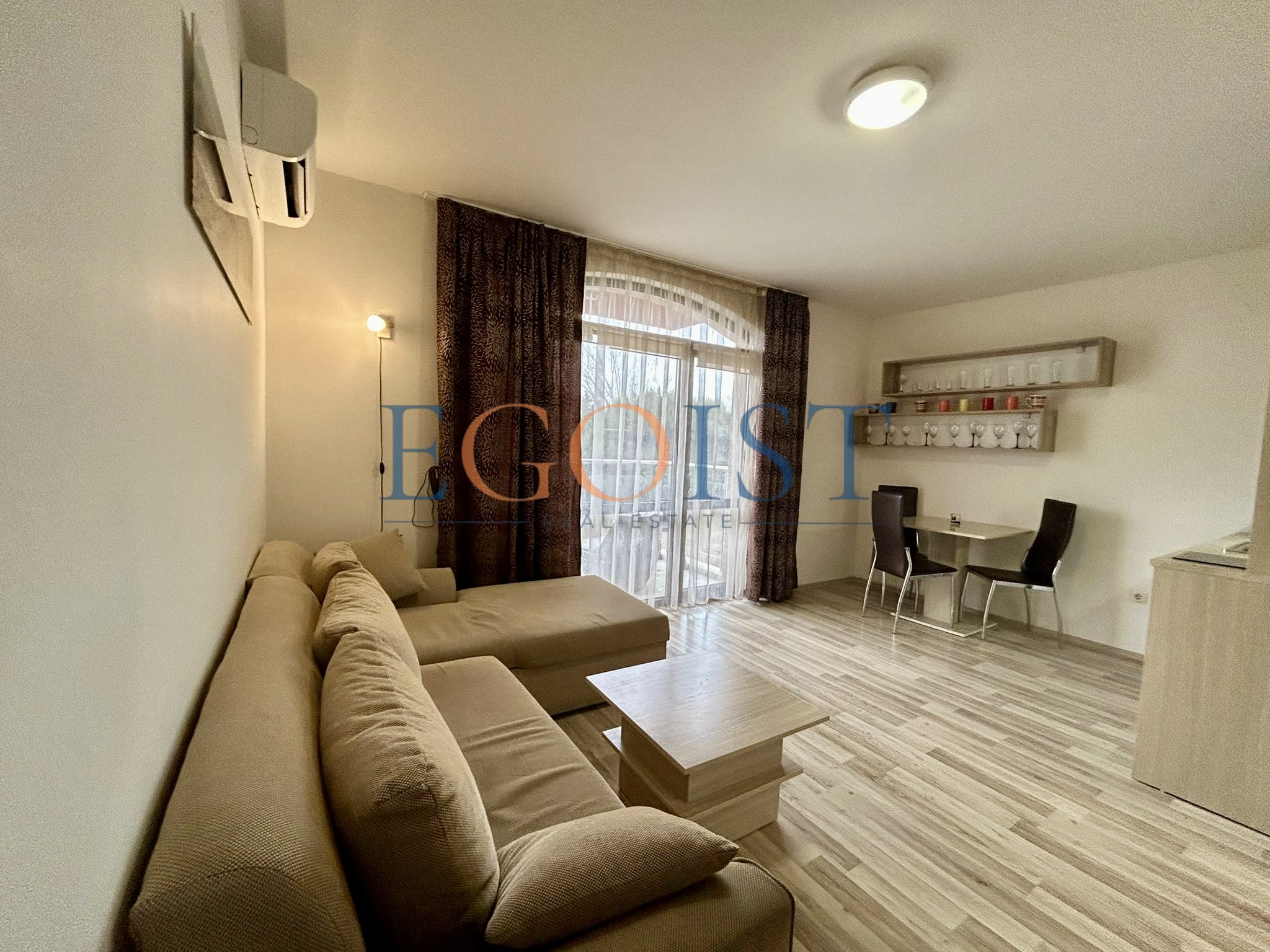 На продажу предлагается апартамент с 1 спальней, который состоит из прихожей, гостиной с зоной для кухни и зоной для отдыха, спальни, санузла и террасы. Подходит как для круглогодичного проживания, так и для сдачи в аренду. Акт 16.