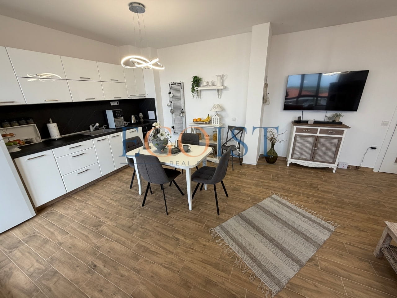 На продажу предлагается апартамент с 2 спальнями, который состоит из прихожей, гостиной с зоной кухни и зоной для отдыха, двух спален, санузла и террасы. Подходит как для круглогодичного проживания, так и для сдачи в аренду. Акт 16.