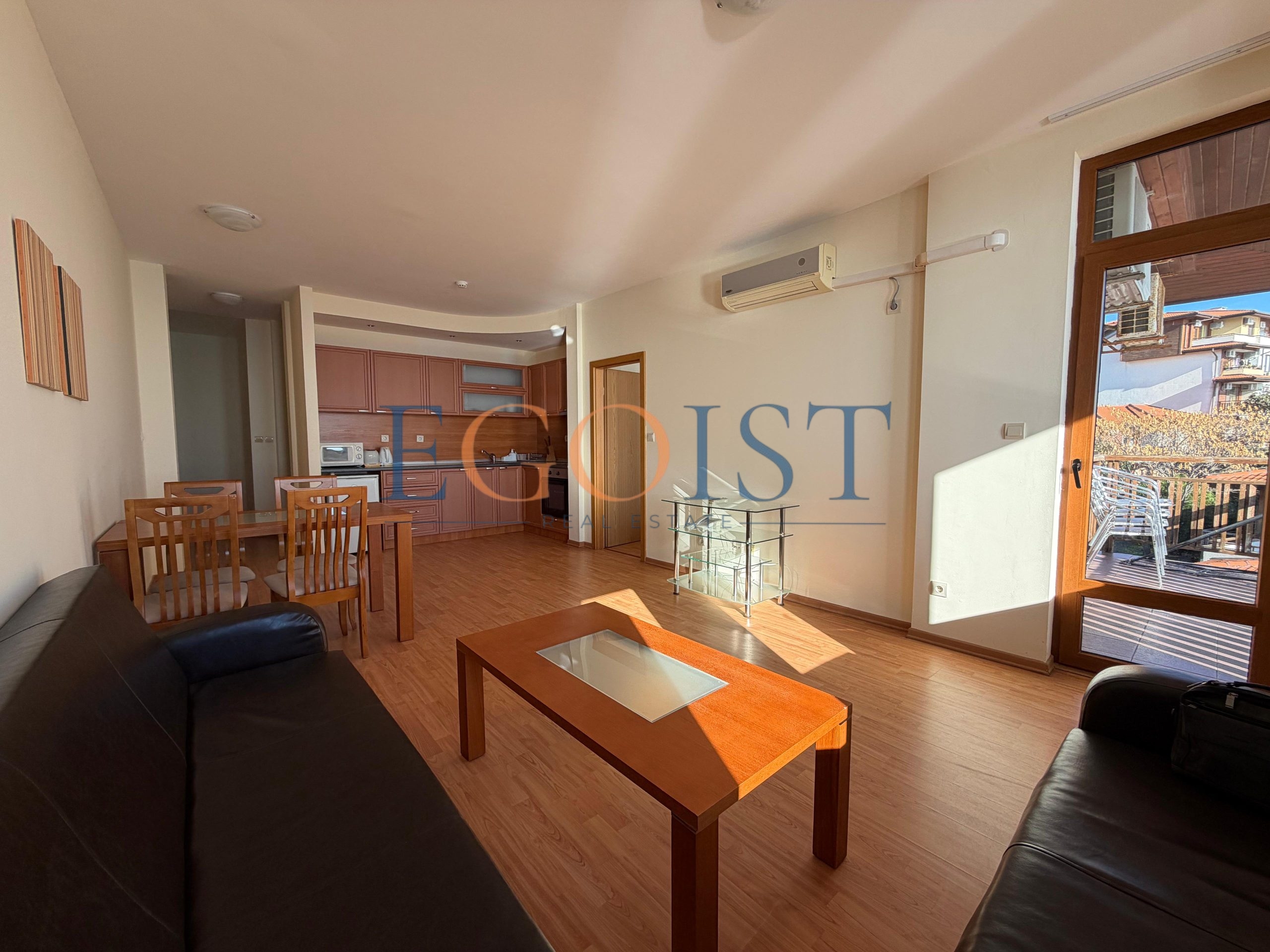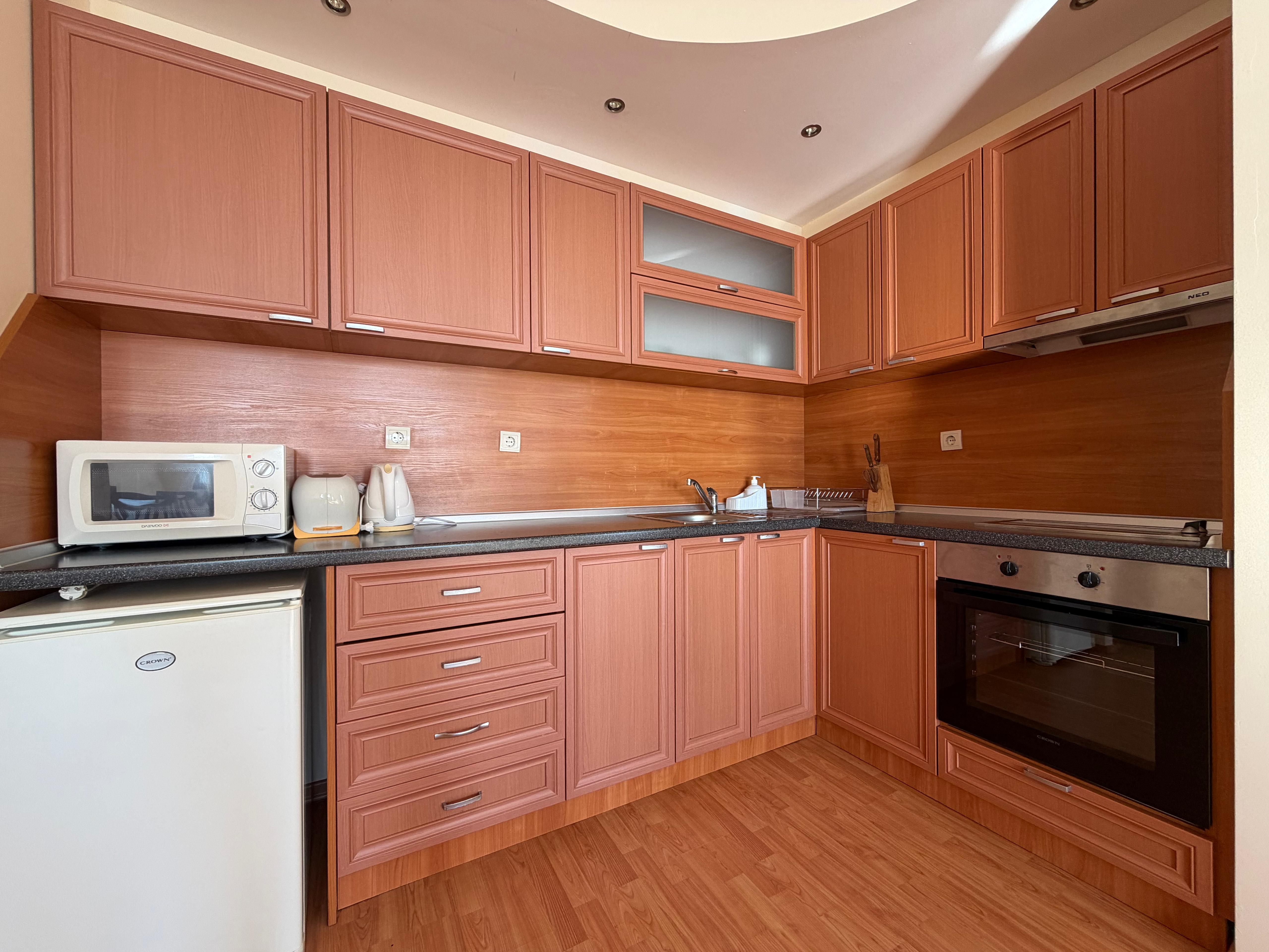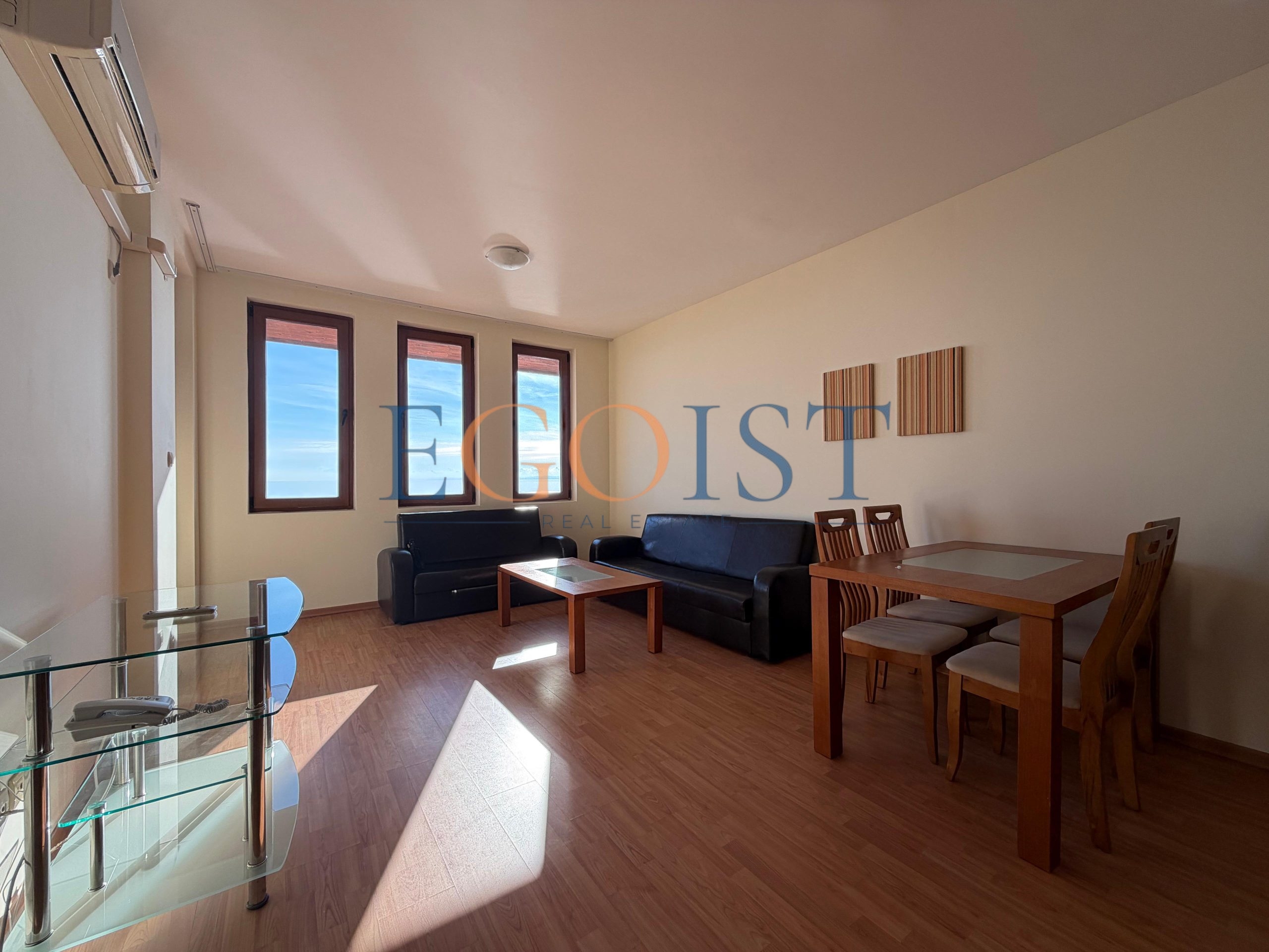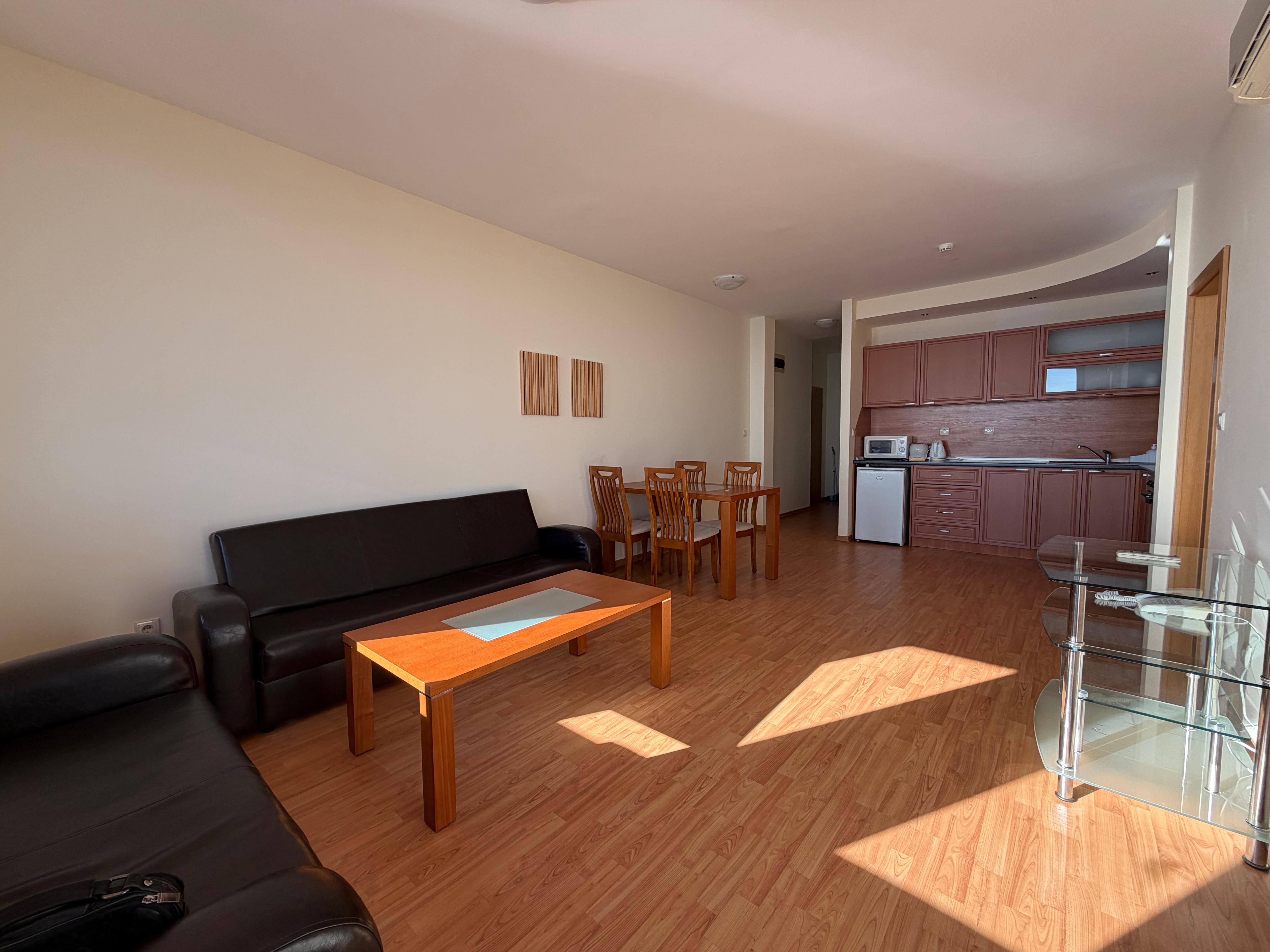 На продажу предлагается апартамент с 2 спальнями, который состоит из прихожей, гостиной с зоной кухни и зоной для отдыха, двух спален, два санузла и террасы. Подходит как для круглогодичного проживания, так и для сдачи в аренду. Акт 16.