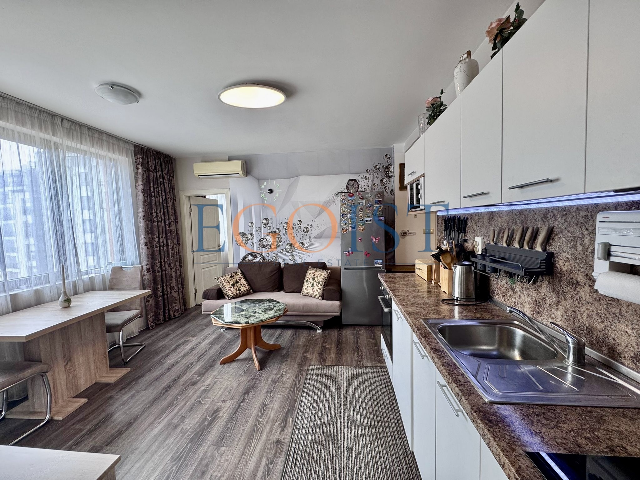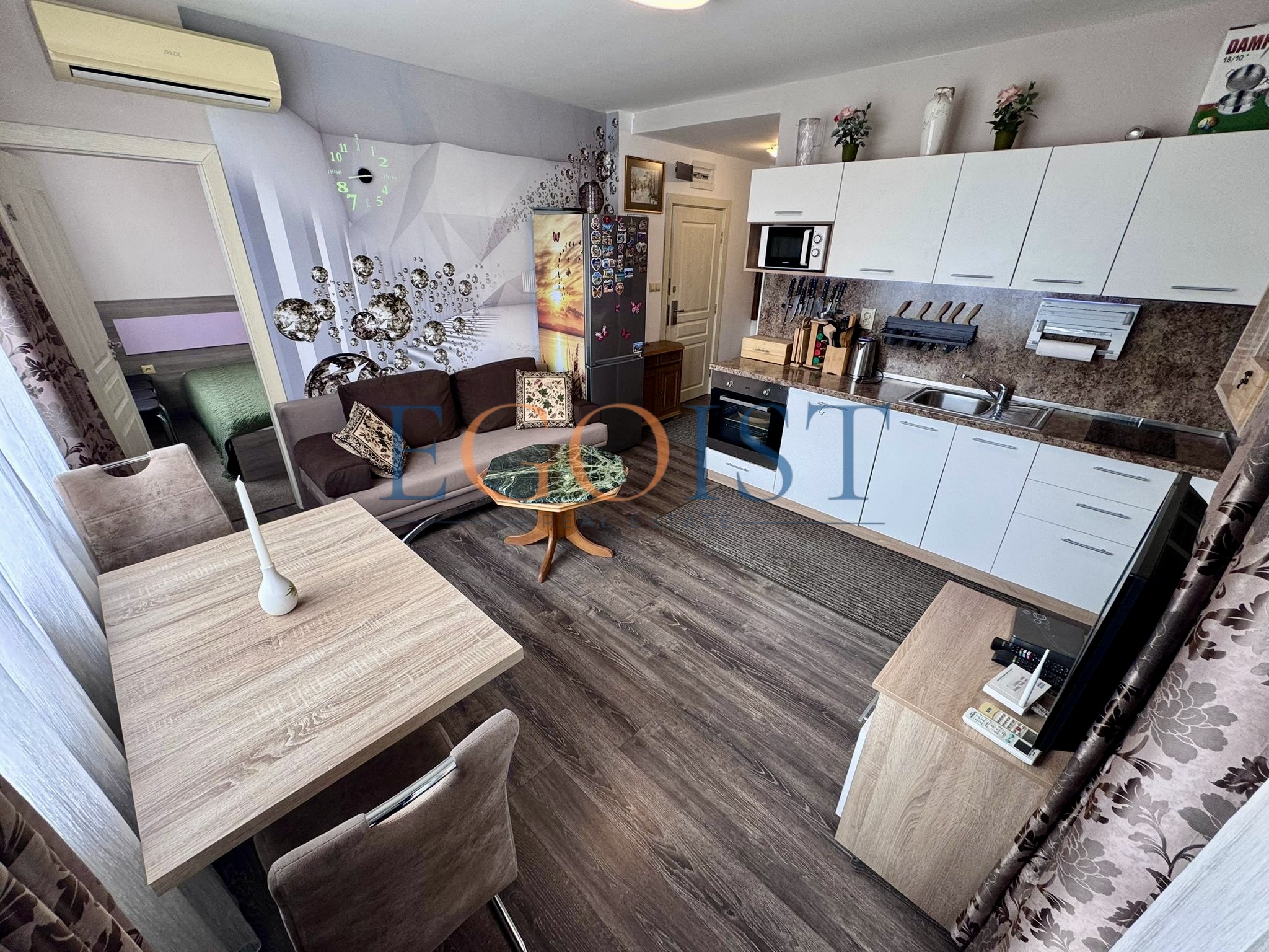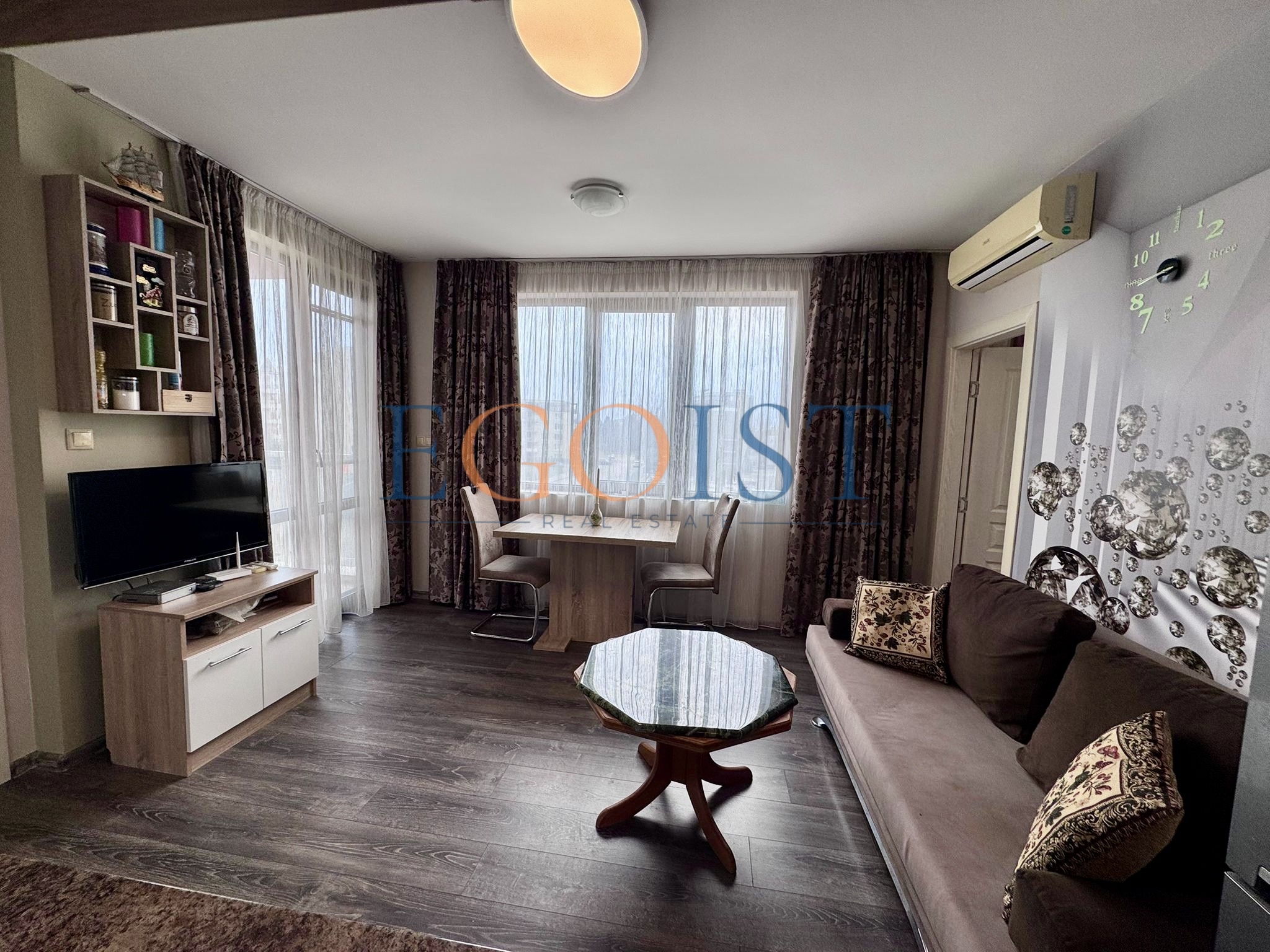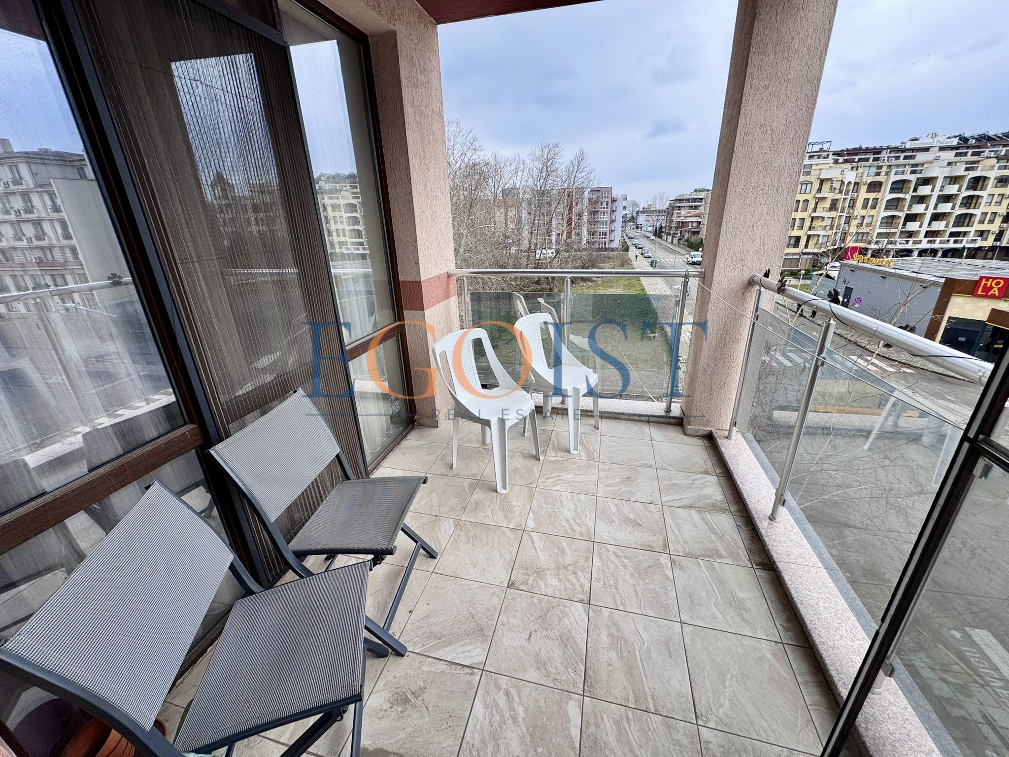 The Tarsis and Tarsis Nova complexes are two adjacent residential complexes in Sunny Beach, located in an area with well-developed infrastructure and convenient access to the sea. Both complexes were built and commissioned with full ownership (Act 16), allowing for unrestricted purchase and sale transactions and immediate use of the property.