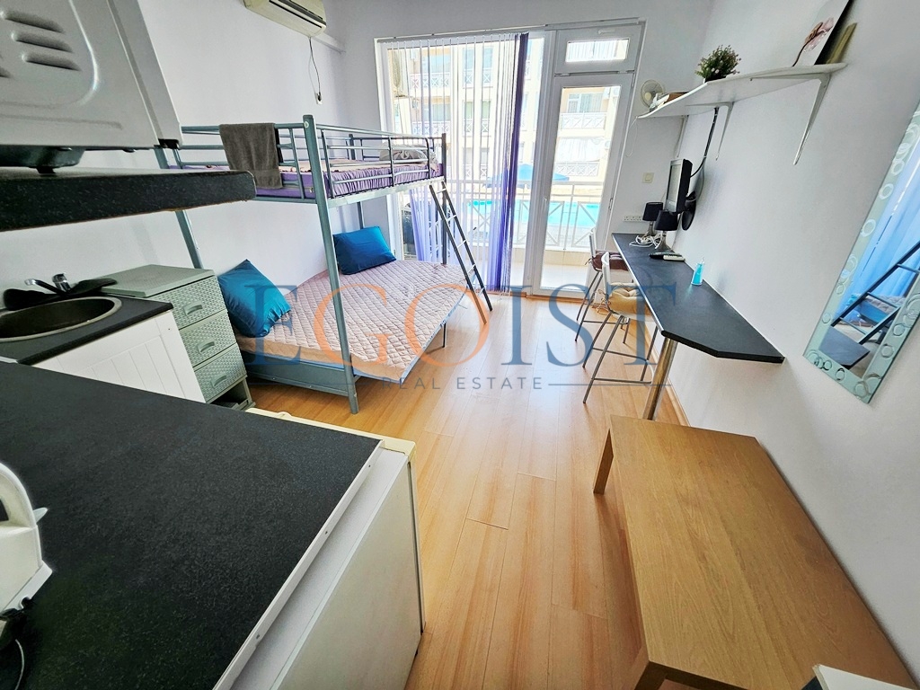 Акт 16. На продажу предлагается студия в комплексе Сани Дей 6. Студия состоит из прихожей, комнаты с кухонной зоной и зоной для отдыха, санузла и террасы. Подходит как для сдачи в аренду, так и для круглогодичного проживания.